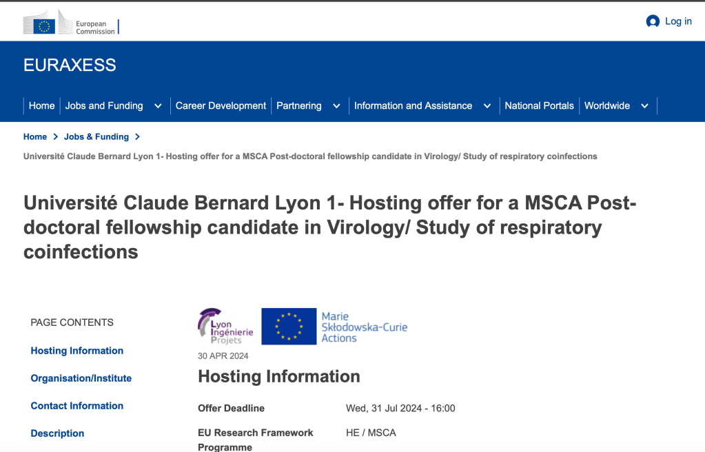 Come and work with us! April 30, 2024 by Olivier Terrier https://euraxess.ec.europa.eu/jobs/hosting/universite-claude-bernard-lyon-1-hosting-offer-msca-post-doctoral-fellowship-1 Share this: Click to share on X (Opens in new window) X Click to share on Facebook (Opens in new window) Facebook Like Loading... Related